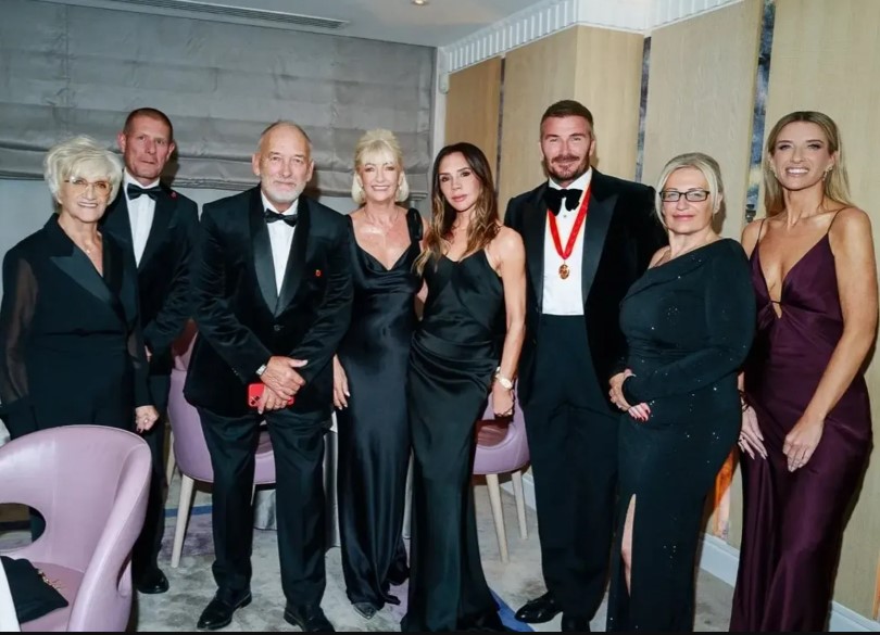 Դեյվիդ Բեքհեմի ասպետական կոչման արժանանալուն նվիրված ընթրիքին հավաքվել էին նրա որդիները՝ Ռոմեոն և Քրուզը, դուստրը՝ Հարփերը, Դեյվիդի ծնողները՝ Սանդրան և Թեդը (նա եկել էր իր երկրորդ կնոջ՝ Հիլարիի հետ) , քույրերը՝ Ջոաննան և Լինը, ինչպես նաև Վիկտորիայի կողմից ազգականները՝ նրա ծնողները՝ Ջեքին և Էնթոնի Ադամսը, եղբայրը՝ Քրիստիանը և քույրը՝ Լուին։
