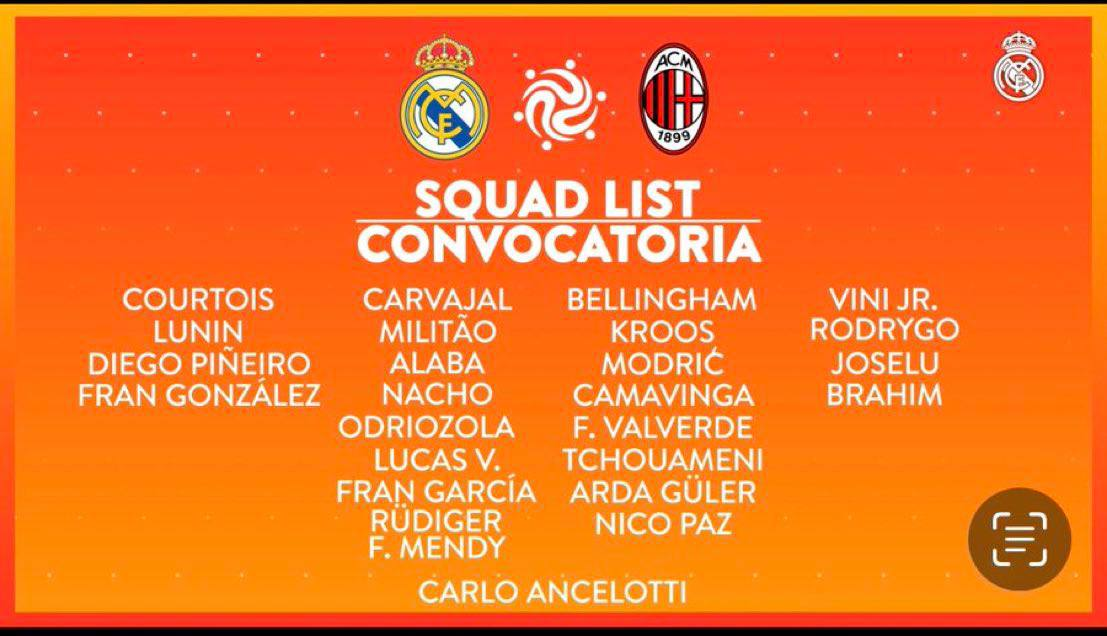 Հանդիպմանը մասնակցելու համար մադրիդյան ակումբի գլխավոր մարզիչ Կառլո Անչելոտին հայտավորել է 23 ֆուտբոլիստի: