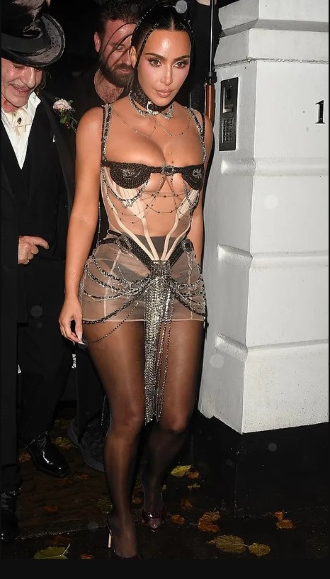 Հոլիվուդյան աստղը Լոնդոնում մասնակցել է նորաձևության լուսանկարիչ Մերտ Ալասի կազմակերպած շքեղ երեկույթին: Քիմ Քարդաշյանը հագել էր թափանցիկ կարճ զգեստ: Ուլունքավոր ապլիկացիաները ծածկում էին նրա ամենաինտիմ հատվածները, իսկ փայլուն ծոպը զարդարում էր կիսաշրջազգեստի առջևի մասը: Հագուստն ընդգծում էր Քարդաշյան-Ջեներ զույգի նիհար կազմվածքը՝ իր լայն կրծքով և նեղ իրանով: